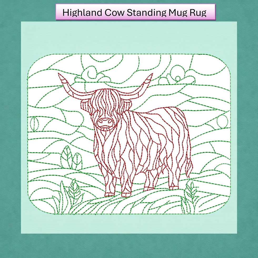 Create your own mug rug from over 60 original designs — each one pre‑embroidered by Jodie so you can jump straight into painting. The stitched outlines stop paint from bleeding, making it easy to get crisp, beautiful results even if you’ve never painted before.